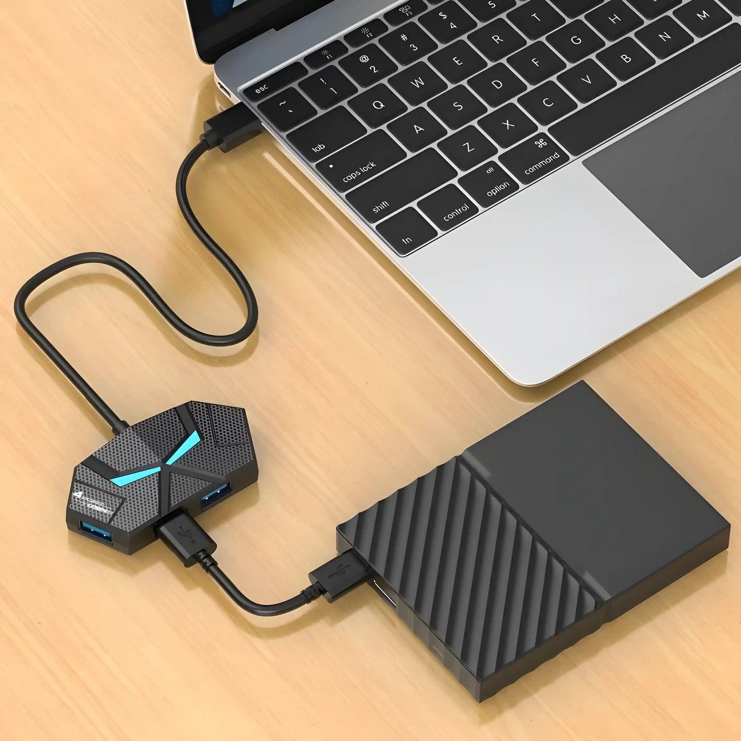 The HUB uses USB 3.0 technology, supporting transfer speeds up to 5Gbps, ensuring fast and stable file exchange.
